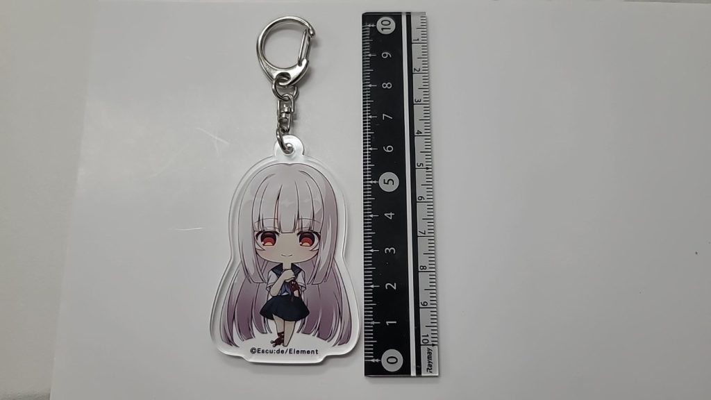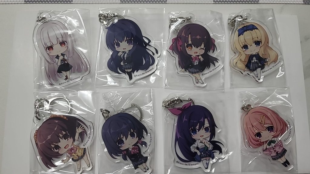 ヒロイン8人のちびキャライラストを使用したアクリルキーホルダー。