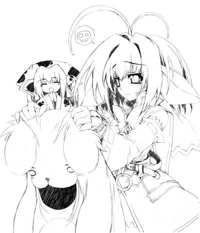 開発スタッフが選ぶ好きなキャラ FINAL 光姫 満太郎 編 実は影マント(流行語) キャラデザ・原画の光姫満太郎です。 3位 葦原 武流 好きな理由 個人的に思うヒーロー像を意識して描きました。 だからメタモルのハタヤマ人間バージョンと髪の色が同じなのも 気になさらぬよう? あと最もゲーム中で多く出ているのが武流の「手」 常にライダーグローブなので描くのが超大変で キャラデザの時点で考慮しなかったことを超呪ったりもしたなあ。 「へぇ〜、超大変で超呪ったんですか? それは超ご苦労様でしたね〜」 「へぇ〜、お兄様を選ぶとは超わかってるようですわね。 超ホメて差し上げますわよ?」 2位 天原 すせり 好きな理由 描いてて一番楽しかったのがすせりでした。 キャラデザに関するいきさつはゲーム中のスタッフルームを見てください(笑) お子様扱いされると怒るくせに、実はやっぱりお子様なところがイイです。 「何しやがりますの!?」がセリフの中では気に入ってるかな (↑ゲーム中で言ってたっけ?) 「言ってますねぇ〜、 『なにしやがりますの!? この腐れ下衆が!』 とか言ってますね〜。 『この腐れ下衆が!』って」 「……どうして私のほうを見ながら 繰り返すのかしら、この牛が」 1位 花月 洸 好きな理由 武流がヒーローならこちらはヒロインを意識してます、髪色も赤系ですし。 乳もでかくて、実はエロいというのもはずせません。 マーク2(分かる人だけ分かって)であるフィリア・カーネリアスには 追加装備「リボン」を マーク3の洸には「触覚」を与えております。 皆さんはあれを「ゴキ触覚」と思われているだろうけど 実はあれは「うさ耳」のつもりな ん で す よ。 「はあ? 無理がありすぎですわ。 これからは間を取って“ゴキ耳触覚巨乳”と呼ぶことにしましょう」 「3へぇ〜ってところですね〜」 総評 なんだかヒネリなさそうなチョイスだけど すせりエンドとおまけシナリオがめっちゃ気に入ってるということで。 とりあえず次のコミケで同人誌で おまけシナリオの続きとして1位〜3位の方々の3P漫画描くかな? 3P(当然♀が2人)大好きマンなので… |