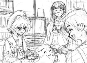 魔法をかけられた上、二人の女の子に囲まれ、受験勉強どころじゃなくなってしまう主人公。